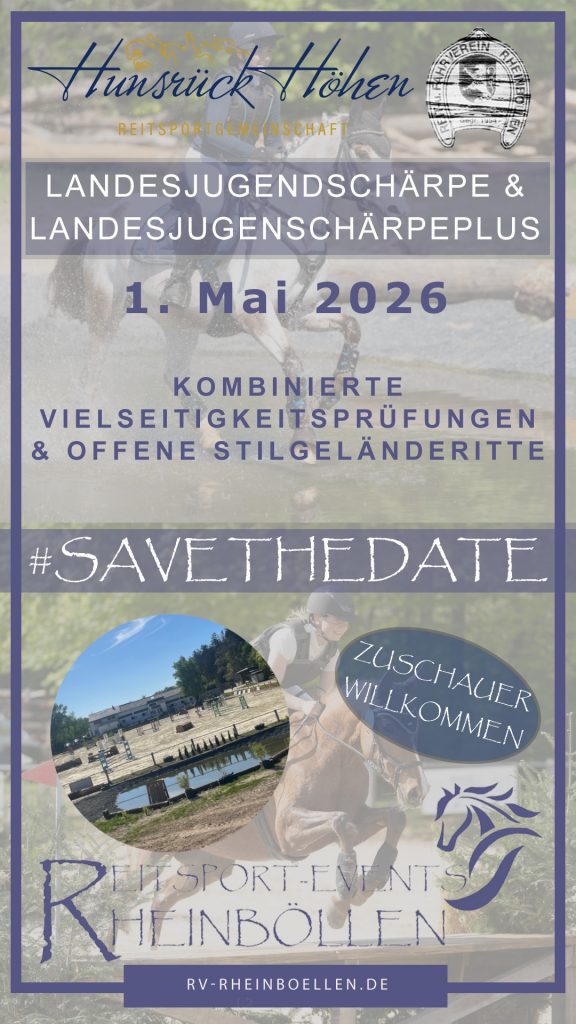 Gemeinsam mit der RG Hunsrück Höhen richten wir zum zweiten Mal am 01. Mai 2026 auf unserer Vereinsanlage die Landesjugendschärpe und die LandesjugendschärpePlus aus. Ausgeschrieben sind kombinierte Vielseitigkeitsprüfungen, Stil Geländeritte und Geländepferdeprüfungen.